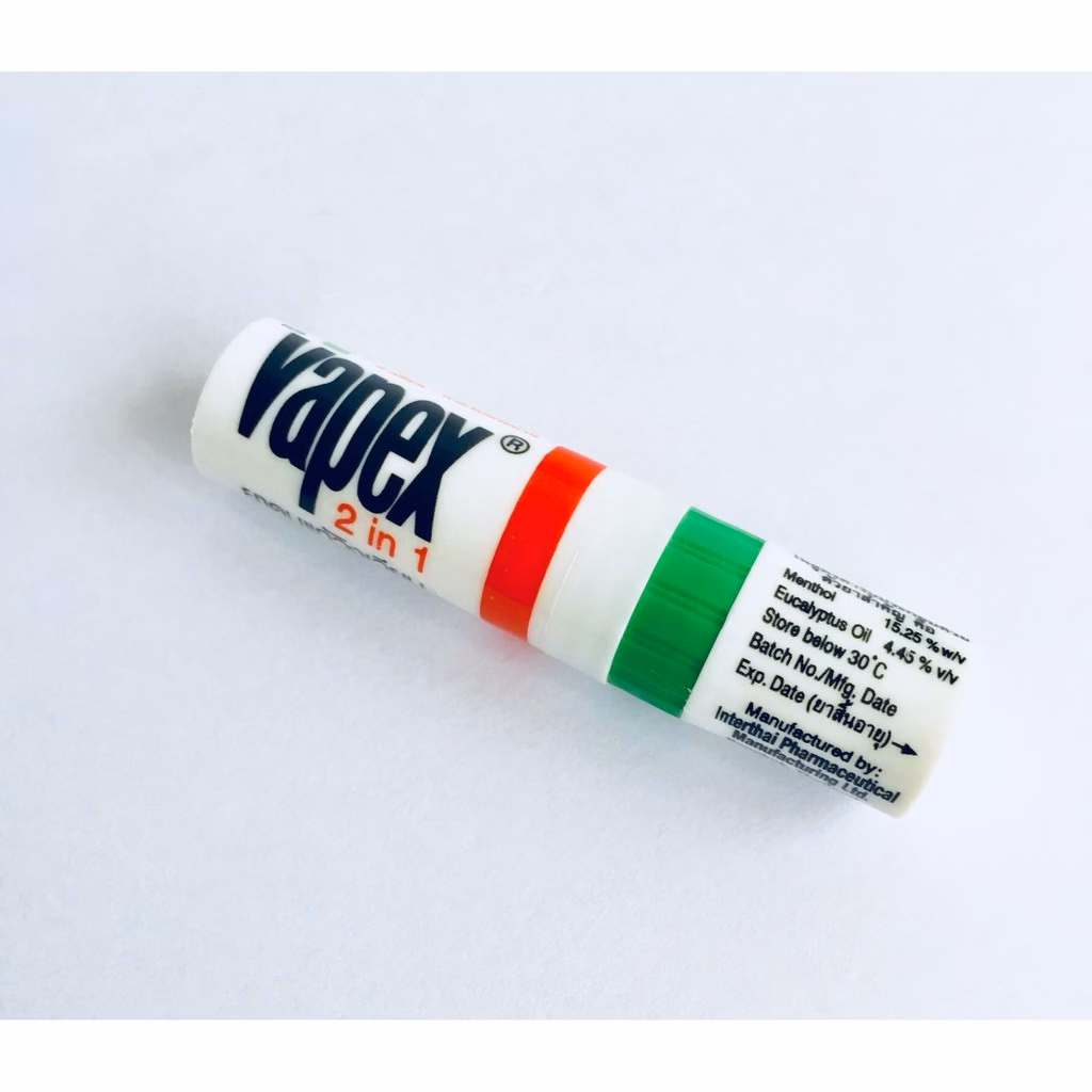 Một trong những loại ống hít thông mũi phổ biến hiện nay là ống hít thông mũi Vapex HR Bayer 2in1 của Thái Lan. Sản phẩm này có chứa thành phần chính là tinh dầu menthol và eucalyptus, giúp thông mũi và giảm viêm xoang hiệu quả.